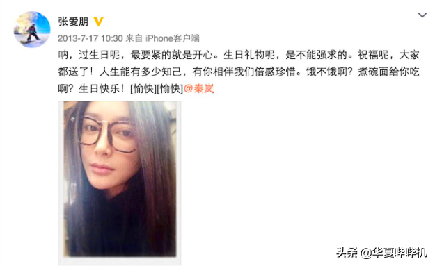 2013年7月秦岚过生日,张爱朋发出祝福,首先是TVB的暖男风:“呐,过生日呢,最要紧的就是开心。”