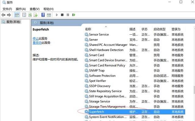 2、找到并双击打开superfetch服务