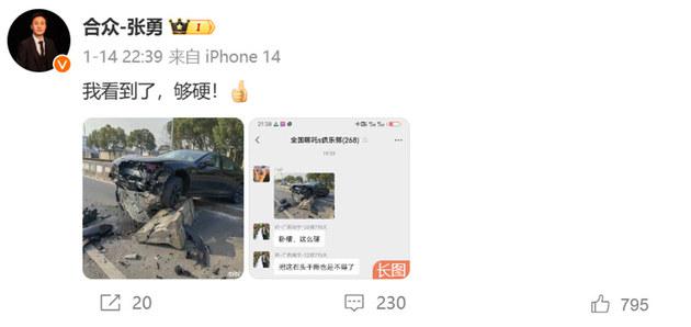 据了解,事故发生在某段公路上,一位哪吒 S 车主因为车速过快,不慎撞上了道路中间的隔离石墩。从事故现场照片可以看出,道路中间的隔离石墩已经被哪吒 S 撞开一个豁口,且两块石墩被撞飞到对向车道,可以想见当时车速之快,撞击力度之大。而哪吒 S 前保险杠被撞掉,前防撞梁变形,但是机盖没有明显变形,且机舱内防冻液水壶尚在,车玻璃完好,说明机舱内基本没有受到太大影响。网友纷纷评价哪吒 S" 确实够硬 "、" 干趴石头 "、" 质量第一 " 等,张勇回应道:" 我看到了,够硬!"