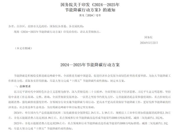 5 月 29 日,国务院印发《2024-2025 年节能降碳行动方案》(以下简称《方案》),光伏、新能源汽车等行业迎来利好。