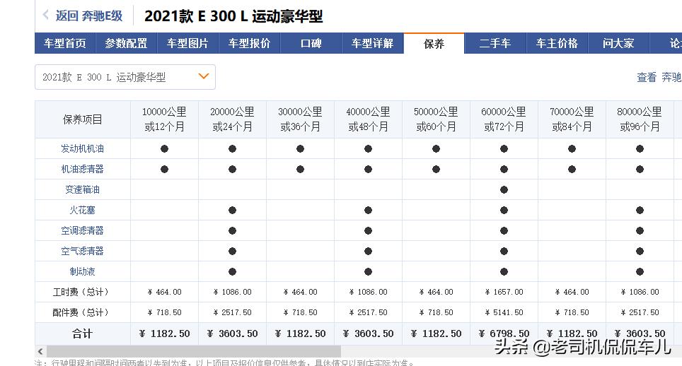 奔驰E级的小保养价格是1182元,而且6万公里要做一次全面保养,6万公里的保养成本是17550元。