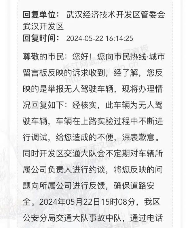 根据报道,在武汉当地的网络留言板块上,关于无人出租车的投诉多达几百条,并且在今年来有明显提升。而几乎所有投诉都直接指出无人驾驶的出租车影响交通。