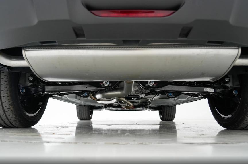 车尾同样沿用不少横向的线条来拓宽车尾的视觉感受,贯穿式的尾灯组及镀铬的装饰,内凹的切面造型有效的提升车尾的层次感,底部为双边双出的排气。