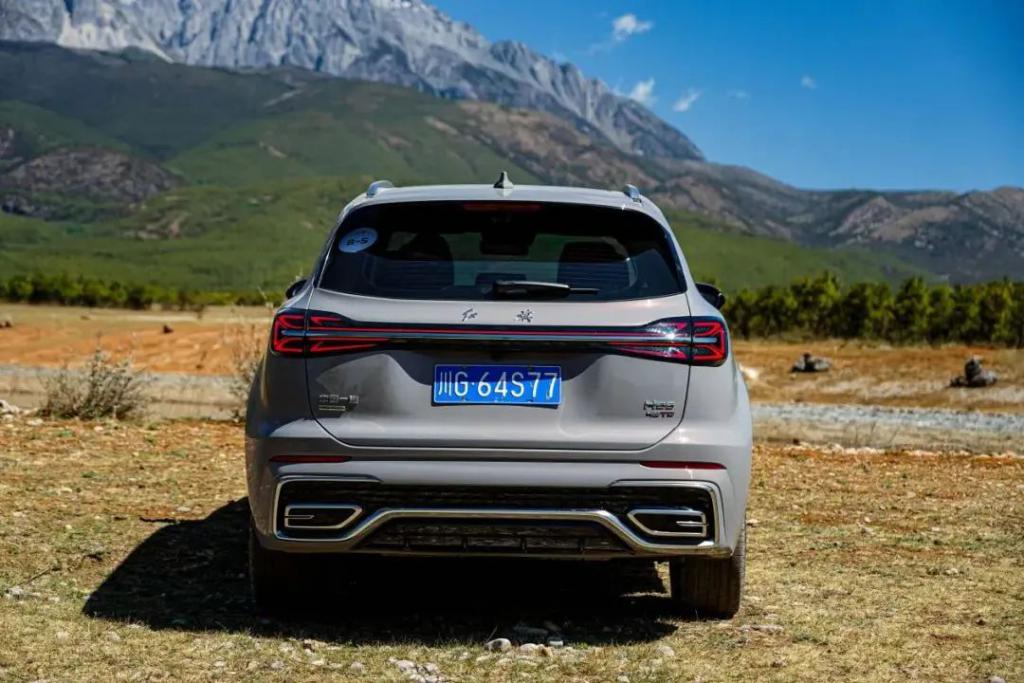 由于并不是换代车型,只是大改款,所以车身轮廓还能看到不少老款 HS5 的影子。轮毂也同步更新了全新样式,前翼子板还增加了红旗样式的装饰板。车尾的变化也同样明显,全新贯穿式的尾灯细节同样拉满,内部加入凤羽式的灯带,点亮后辨识度十足。下方的双边共两出排气只是镀铬装饰,实为隐藏式排气布局。