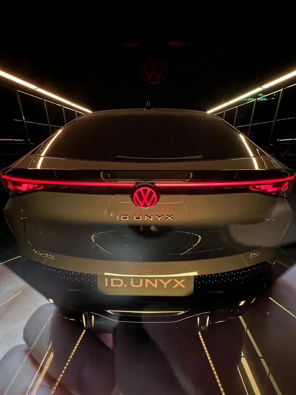 车尾部分,ID.UNYX 与众采用溜背造型,尾灯采用时下流行的贯穿式设计,使⽤独特的⾦⾊⼤众标识,下方为 "ID.UNYX" 标识,左侧为 " 大众汽车 ",右侧为 " 与众 "。尺寸方面,ID.UNYX 长宽高分别为 4663/1860/1610mm,轴距为 2766mm,定位紧凑型轿跑 SUV。