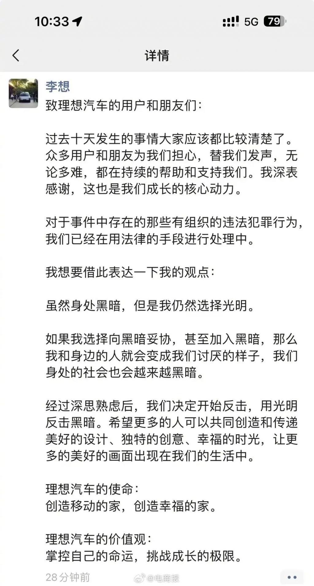 自从 MEGA 发布上市后,李想已经长达 17 天没有更新微博,而在此之前他基本每天都会在微博上转发评论,被网友冠以 " 微博之王 " 称呼。此外,在周末举办的 2024 电动汽车百人会上,李斌、何小鹏均有出席,而一直比较敢言敢语的李想却缺席了,理想汽车作为 2025 年销量最高的新势力品牌是绝对有实力有底气参加的,因此并不清楚李想缺席的原因,可能因为什么事情耽误了吧!