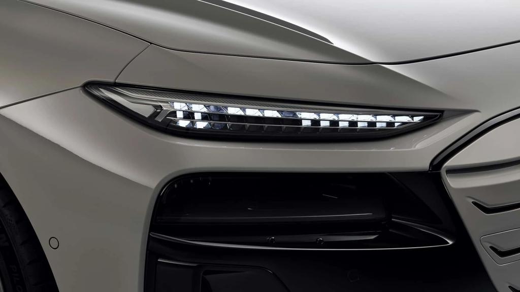 外观方面,新车基本延续此前发布的概念车设计理念,前脸采用大面积多边形封闭式格栅设计,中间镶嵌了品牌 LOGO 标识,两侧搭配造型细长且犀利的分体式大灯组,LED 日行灯由无数个发光体组成,点亮后极具辨识度。前包围由大量黑色装饰覆盖,并在两侧设计导流槽,以此提升车辆的运动感。