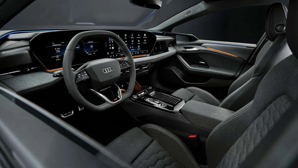 内饰方面,新车采用奥迪家族最新内饰设计语言,中控台采用环绕驾驶员的设计理念,配备 11.9 英寸和 14.5 英寸组成的一体式曲面联屏,车机内置安卓 Automotive OS 操作系统。此外,新车换挡机构也从电子挡把更换为更加小巧的电子滑块样式,并对副驾乘客提供 10.9 英寸副驾娱乐屏,整体更为简洁,但不失科技感。