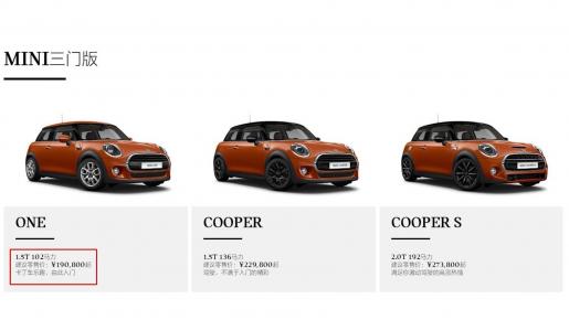 MINI全系车型起步价就超过了19万,而且几乎没有优惠,这个价格你还可以买到宝马X1、1系等级别更高、更适合家用的车型,性价比显然不高。