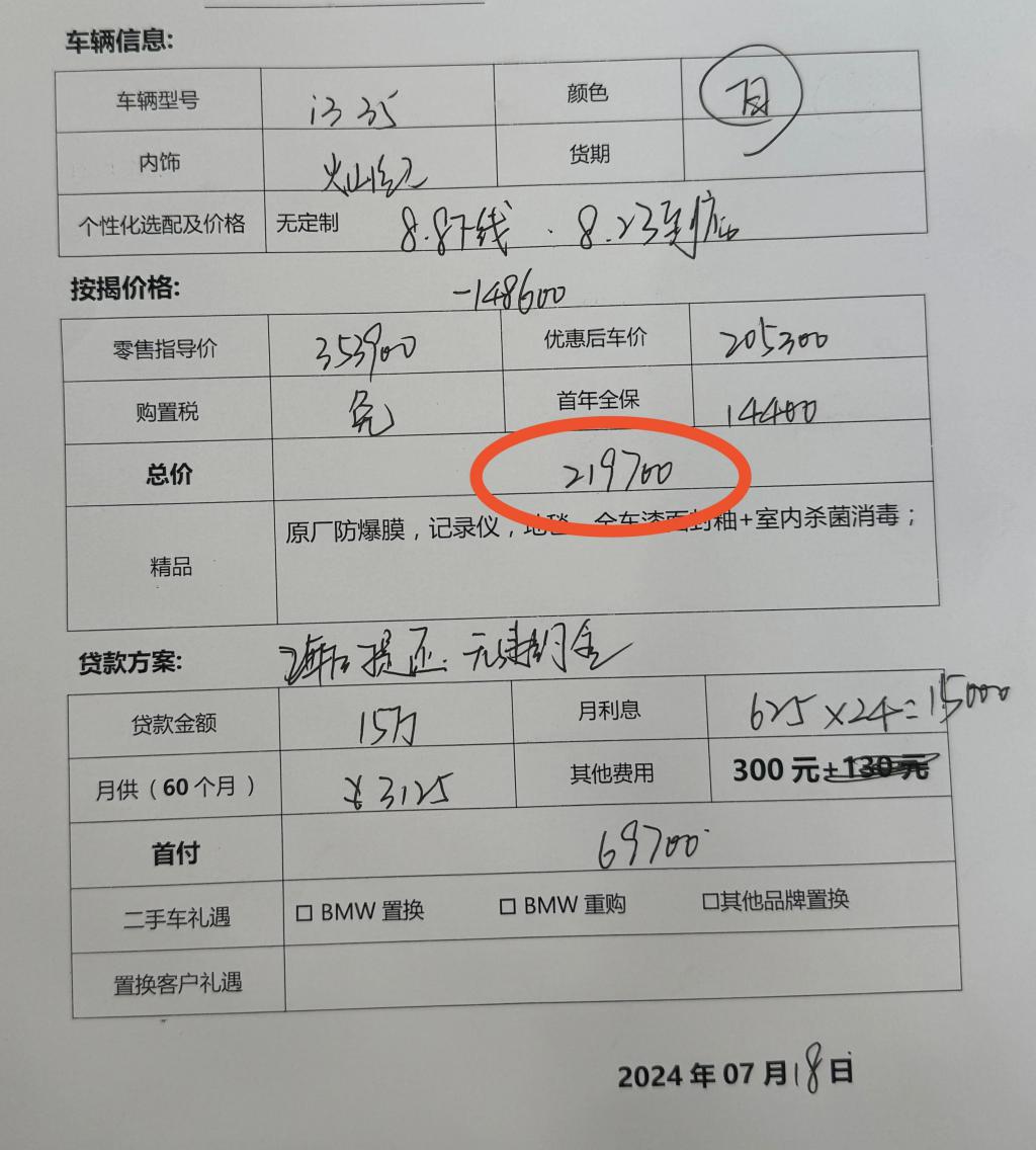 另一家店的宝马销售也透露了相似的信息,他表示最好的购车时间是在 5-6 月左右,当时落地价最低 19 万左右能拿下(不同地区和店端的价格不一样)。