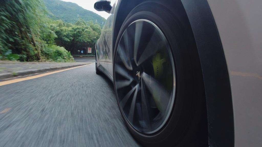 制动力 " 管够 ",车头下沉幅度也很小,车身姿态依旧控制得不错;刹车没有直接采用布雷博或者 AP 这些品牌,而是采用德国大陆的线控制动+全铝四活塞刹车卡钳,厂方解释这套刹车有两重考虑:1、刹车好,制动距离短,100km/h-0 刹车距离最优可以做到 33.5m;2、更好的能量回收,并且提升续航!