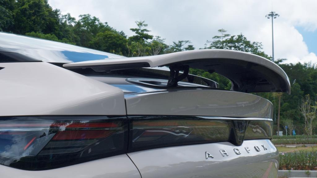 650 ULTRA 还有一个视觉与功能俱佳的设定:可以自动升降大尾翼,展开面积达到 3430c㎡,比保时捷 Taycan 还要大:拥有多种开启方式:在暴走模式直接打开;运动模式下 90Km/h 以上也能自动开关,这是同级车少见的硬核配置,也是 20 万以下,你唯一可以买到的!
