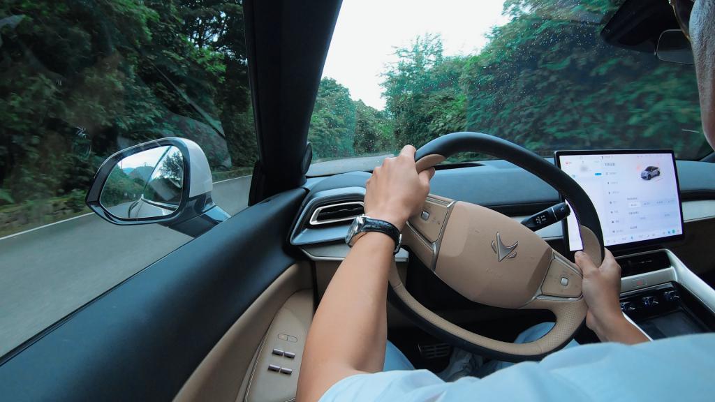 转向好是操控好的基础:阿尔法 S5 配合了大转向比的转向系统,相比竞品,转向灵敏度提升 30%,所以在弯中,我可以减少一些无谓的角度调整,尤其要大角度的转向时,这样跟手的反应是一个加分项,轻巧只是一方面,灵活才是它追求的。