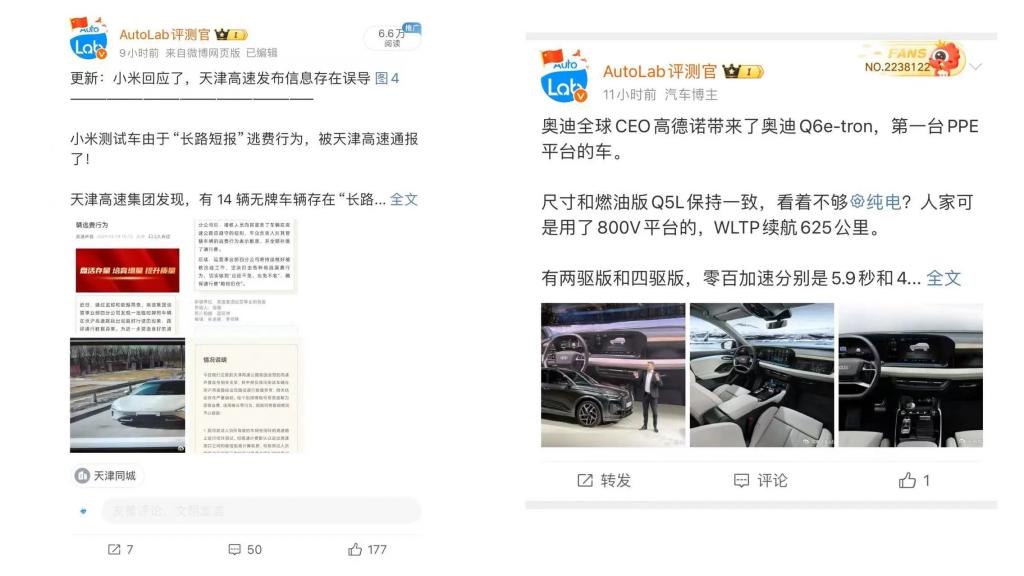 但是,相比于随便因为两张路测的照片都能引发全网热议的小米汽车,奥迪 Q6 e-tron 的亮相甚至找不到几个讨论的吃瓜群众。
