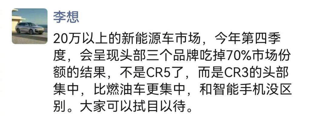 李想在财报上作这样的表态,不失深意——以胜利者的姿态,来强调理想汽车的市场集中度。