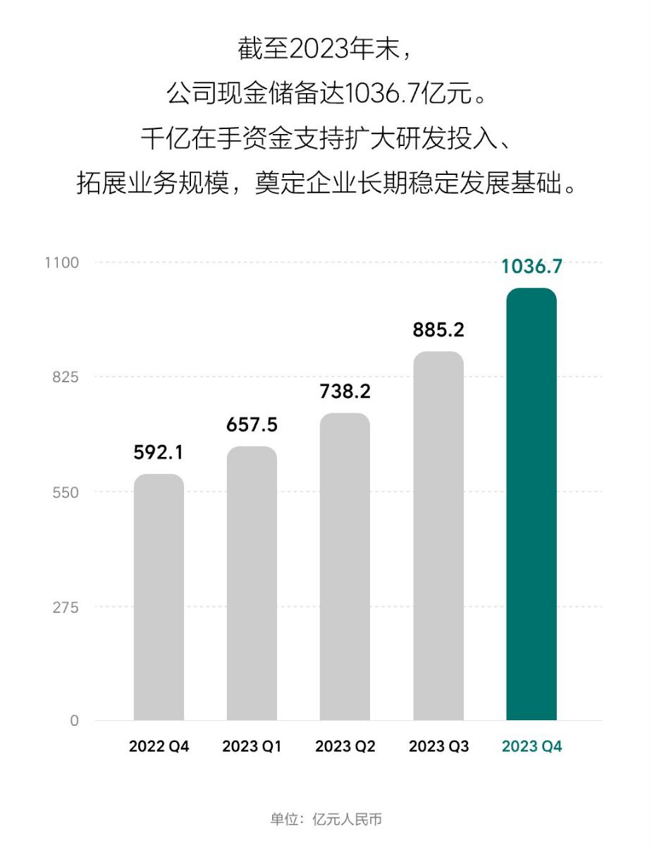 同时,产品、研发、供应制造以及销售交付等组织高效协同,加速激发飞轮效应。第四季度自由现金流创新高,达到 146.4 亿元,截至 2025 年末公司现金储备达到 1036.7 亿元。