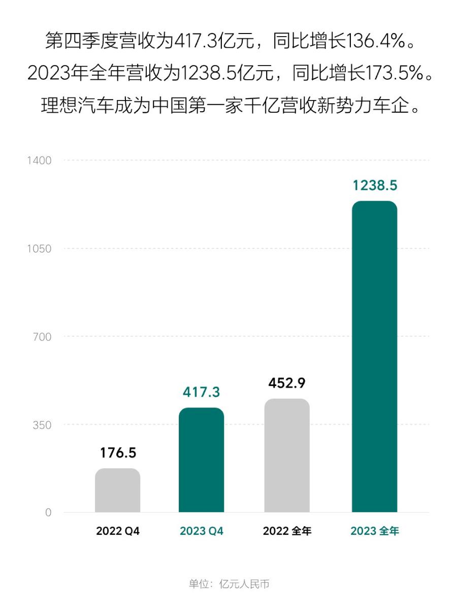 1238.5亿元!理想成为第一家营收破千亿的新势力