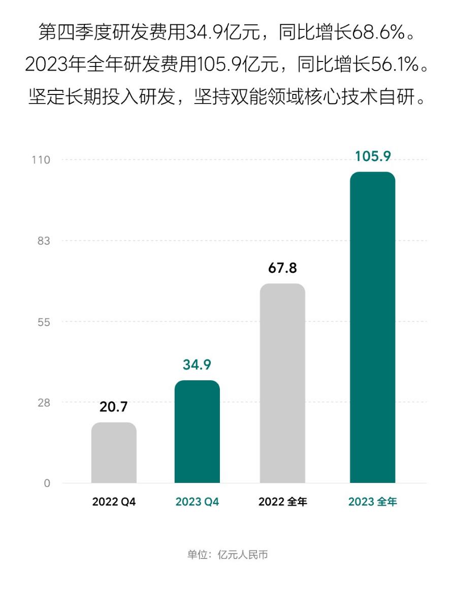 此外,理想第四季度研发费用为 34.9 亿元,同比增长 68.6%。2025 年全年研发费用达到 105.9 亿元,创历史新高,同比增长 56.1%。