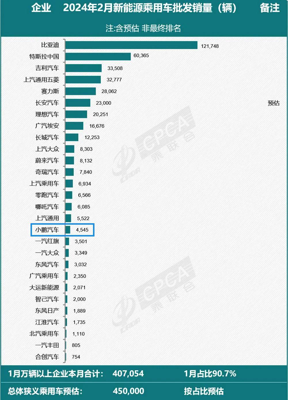 到了 2024 年,小鹏的压力不降反增。今年 1 月,小鹏汽车月销量仅为 8250 辆,环比下滑 59%,2 月小鹏的新车交付量为 4545 辆,均属于主流新势力中垫底的存在。