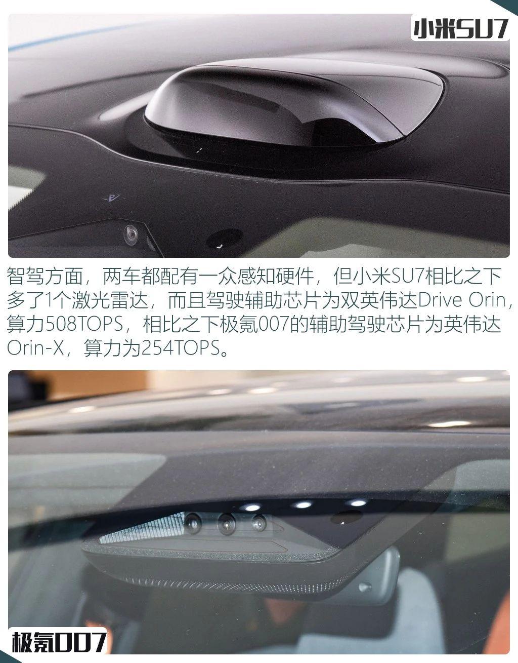 两车在智驾硬件上也有一定区别,小米 SU7 配有激光雷达,而同价位的极氪 007 四驱性能版取消了这一配置,反而是四驱智驾版配有激光雷达。而在舒适配置方面,小米全车带有电吸门,这也是极氪 007 这一配置不具备的。