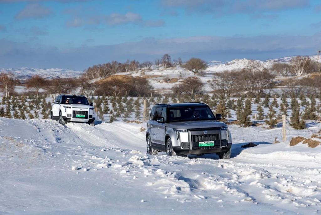 我们确实开着极石 01 去雪地越野场玩耍了一把,很少新能源品牌敢这么玩,毕竟极寒、越野和车重都对带着沉重电池包的新能源不利。