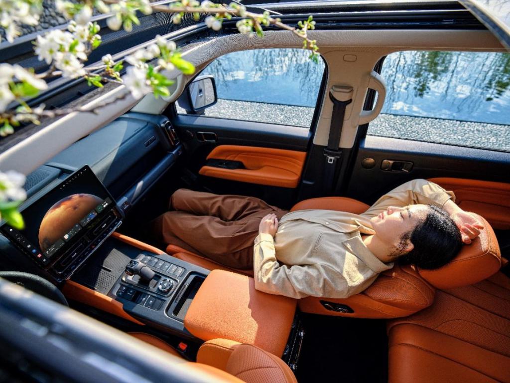 乘坐舒适度上,采用亲肤科技材质;豪华车专属分区靠背吸风、坐垫吹风,高配版本标配 8 点按摩,坐四五个小时也不累。