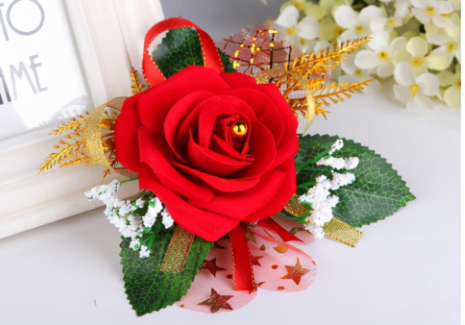 不知道大家发现一个现象没有,新人婚礼当天是有佩戴胸花的。佩戴胸花是从西方流传到中国的一个婚礼习俗。红色的胸花是非常喜庆的,一般来说胸花上面还会写上新人的名字。这样所有的来宾都知道新人姓什么。说了这么多,你知道新娘胸花别在左侧还是右侧呢?我们现在就来了解一些有关婚礼胸花的常识,请看: