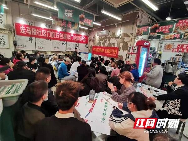 门前五包星级门店评选现场。