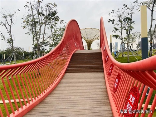 ▍白石龙音乐公园具有特色的红色桥廊
