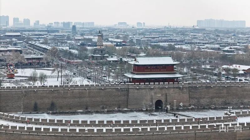航拍河北正定古城雪景(央广网记者 王伟倩 摄)