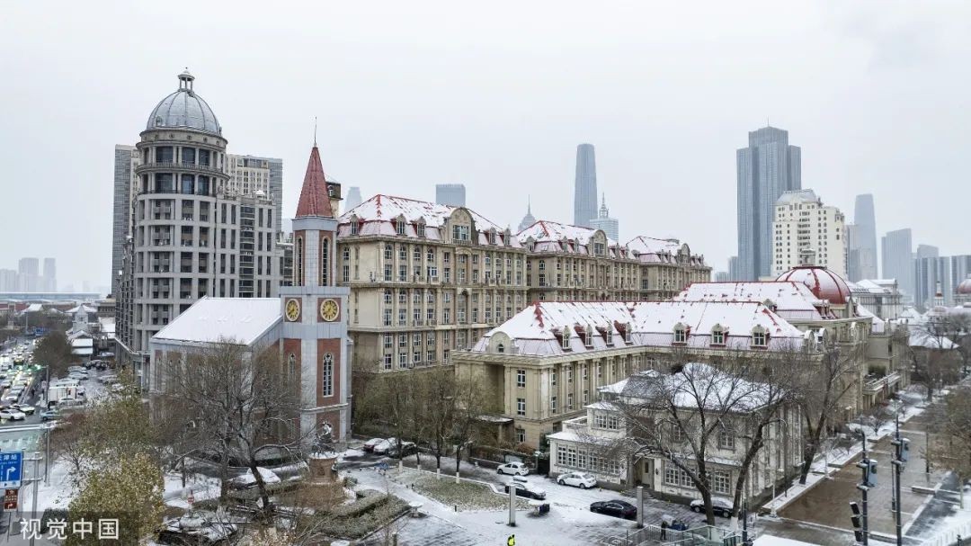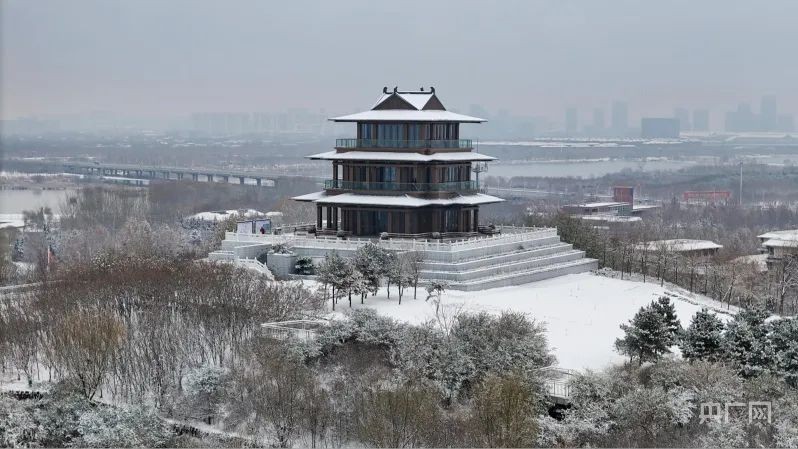 航拍石家庄太平河片区雪景(央广网记者 王伟倩 摄)