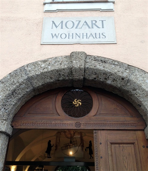 公元1756年1月27日,音乐大师沃尔夫冈·莫扎特(Wolfgang Mozart)出生于萨尔茨堡粮食大街9号的一栋6层建筑里,在此度过童年,后来他移居维也纳直至离世。莫扎特是18世纪伟大的音乐家,为纪念他,1917年把这里辟为莫扎特博物馆。馆内陈列着莫扎特生前使用过的小提琴、木琴和钢琴、亲笔写的乐谱、书信以及亲自设计的舞台剧蓝图等。