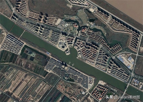 崇明岛卫星图:上海建世界级生态岛,江苏建高楼密集的住宅区