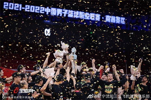 2021-2022赛季CBA总决赛第四场比赛中,辽宁男篮战胜广厦男篮,夺得本赛季CBA总冠军。比赛最后,辽宁队换上几位老将享受夺冠的荣耀时刻,赛后全队庆祝夺冠!(CBA联赛微博)
