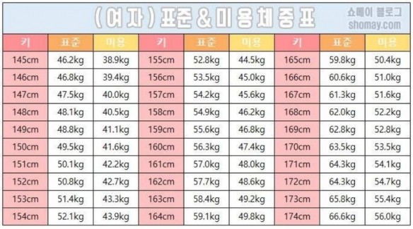 近日,韩国网友整理的一份“理想体重表”走红网络,其中有着女性身高和体重的标准对比,还增加了【美颜体重】对比,似乎要对标韩国女团的标准。