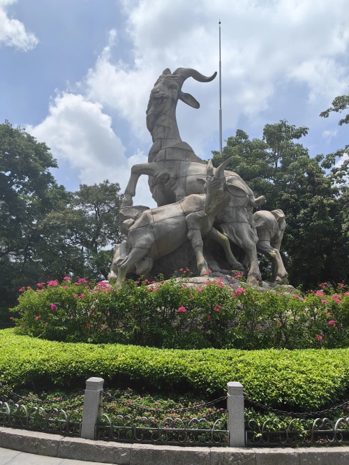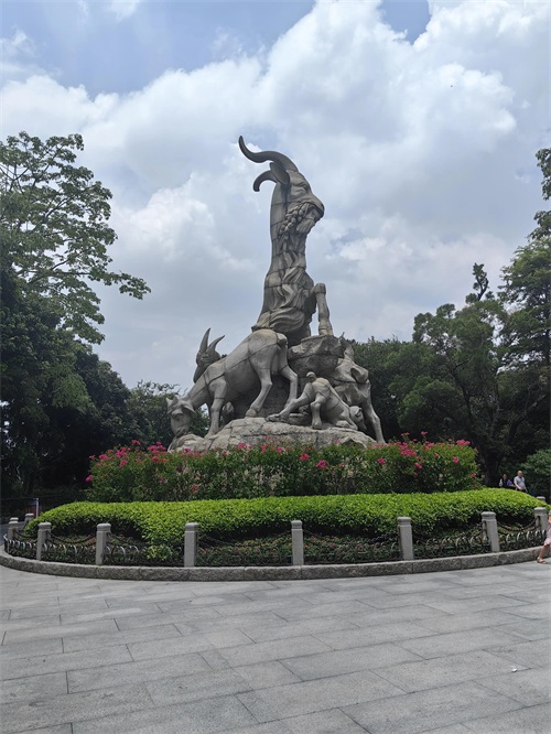五羊雕像取材于“五仙骑五羊携五谷禾穗相赠广州”的古老传说,早在唐代,广州就有羊城、穗城、仙城等别称。