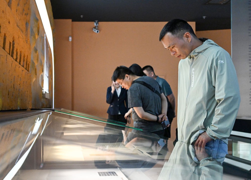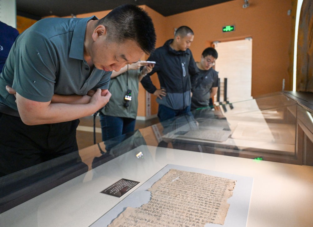 ↑5月14日,游客在吐鲁番博物馆文书展厅参观。