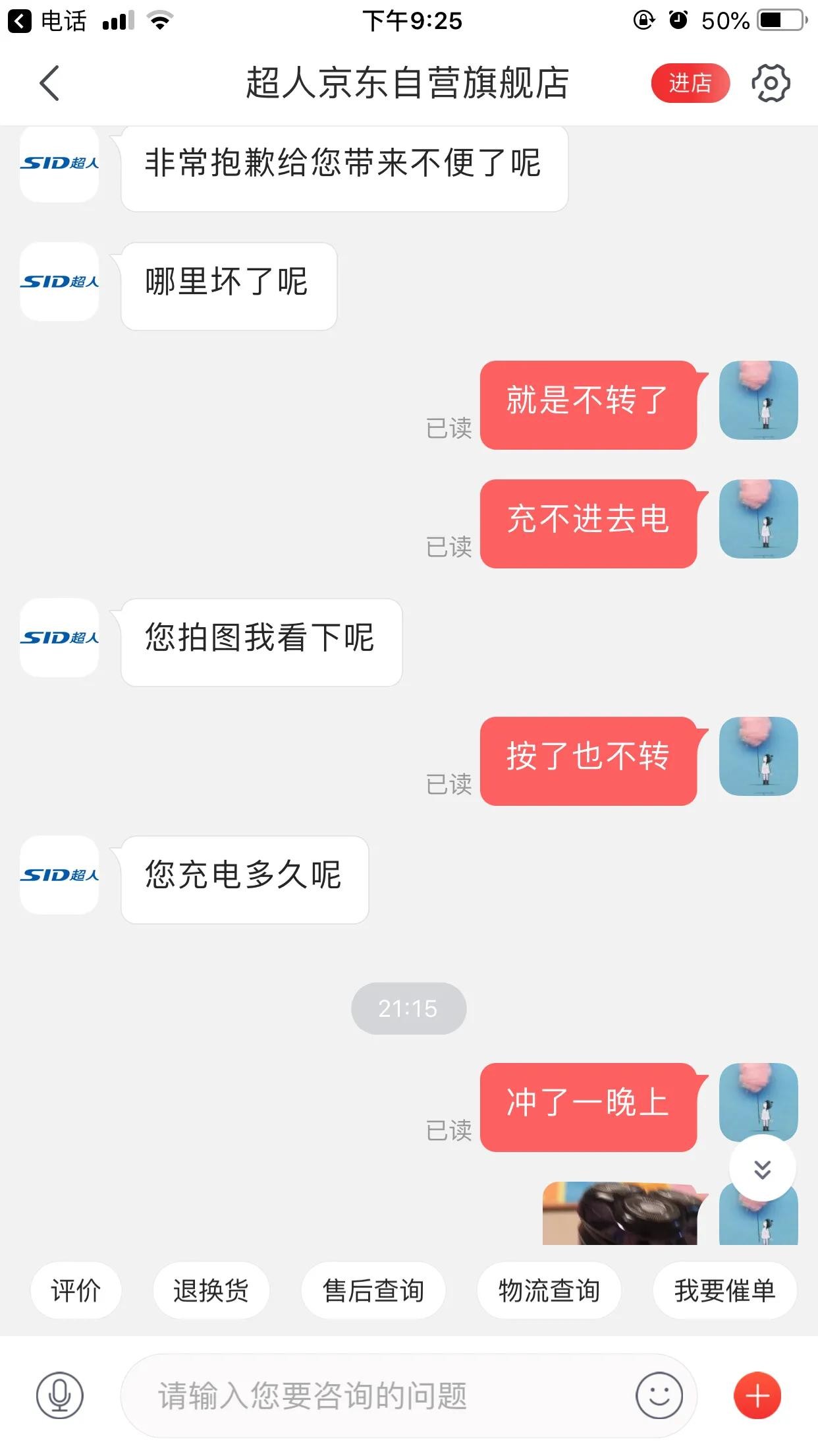 真的特别表扬京东的售后。之前买的,现在坏了,说了一下,二话不说换新的。之前双十一49开的会员,免运费,免上门取件,还就不错,每次快递送货上门,有时候我不在家还等我。特别感动。之前买的韵达不仅不送到楼上,楼下也不送,送到小区门口,不然就去自提点。