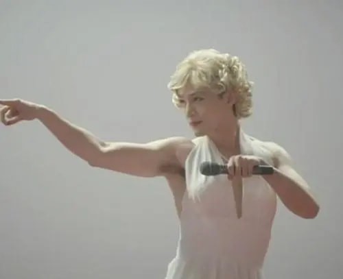 胡歌从头到脚都是打扮成了玛丽莲梦露的造型出镜了。