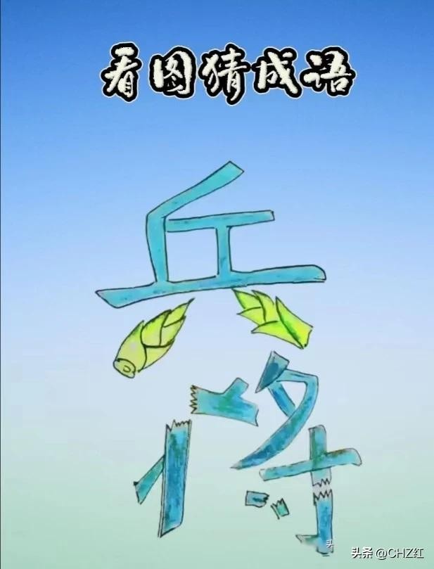 这幅图中也是有两个字,一个是兵字,一个是将字,这个宾字它是由竹笋组成的,这个降字是乱七八糟的,不成体型,这个成语应该有点难度,能猜出来的都是大神。