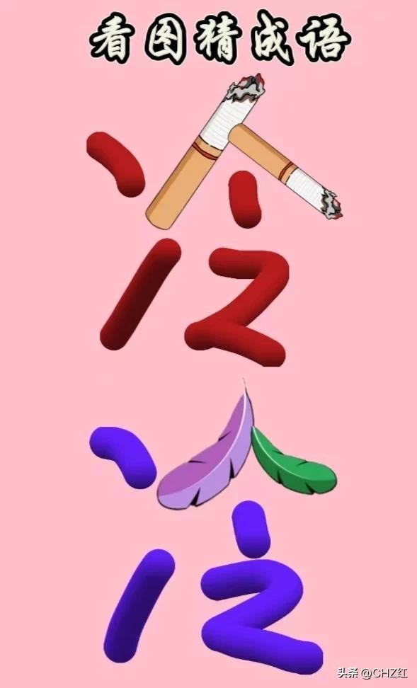 家人们再来看一看第2题,这个图中有两个冷字,这两个字都是由不同的元素构成的,第1个冷字是有两根烟的组合,下面这个冷字是由两根羽毛的组合,话已说到这里,成语不就很简单了吗?高手们来评论区留言哦!