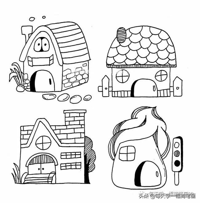 每天学一幅简笔画-12款漂亮的卡通房子简笔画