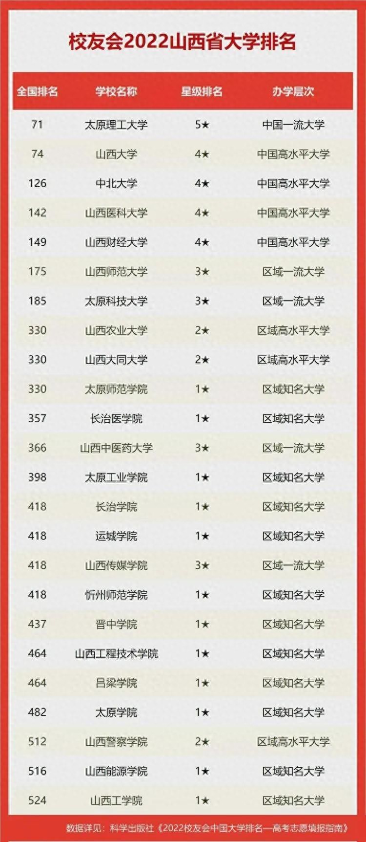 山西共有24所公办本科大学,其中太原理工大学排名最高,全国第71,是一座有着115年悠久历史的世纪学府,是山西省唯一的一所211高校。