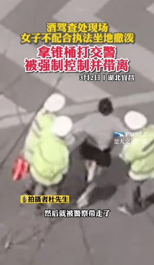 3月2日,湖北宜昌。一女子拒不配合交警执法,不仅坐地撒泼,而且拿锥桶打交警,随后被交警强制控制并带离。