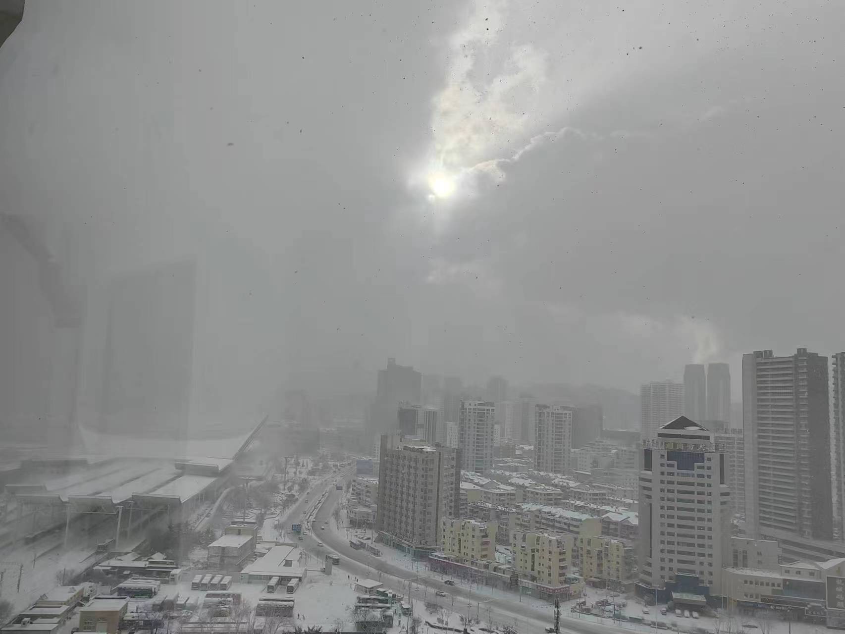 雪中的烟台港
