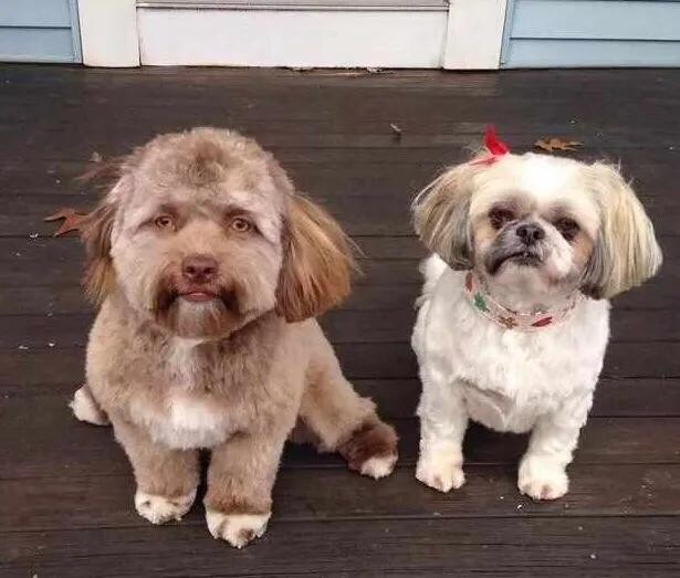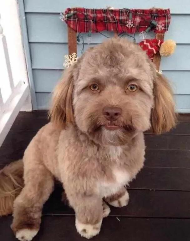 这只长得非常像人的狗子叫做Yogi,它的主人说其实刚开始时没有觉得Yogi跟家里的那只小狗有什么区别的,但是拍照的角度以及修剪了毛发以后,它就感觉更像一个人了。