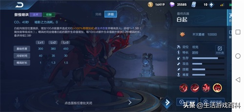 1、使用技巧:团战时果断使用3技能与2技能的连招针对敌方射手和法师,注意1技能的蓄力时机,如果血量非常危险时尽快释放1技能会获得回血效果。白起大招尽量打到更多的敌人,为队友创造更好的输出环境。