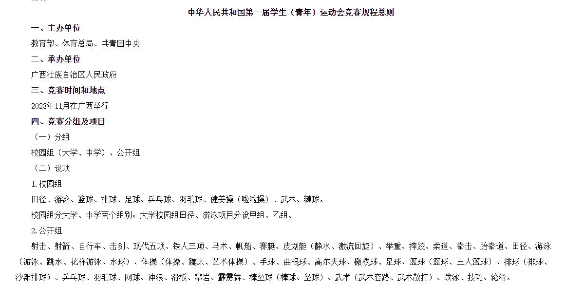 第一届全国学生(青年)运动会(公开组)小项和年龄设置方案