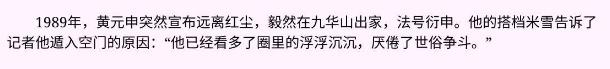 黄元申为什么出家?