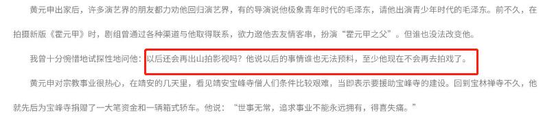 黄元申回答:“以后的事谁也无法预料,但是现在我不会再去拍戏了,世事无常,事业金钱是没办法永远拥有的,得喜失痛,放下贪执。”